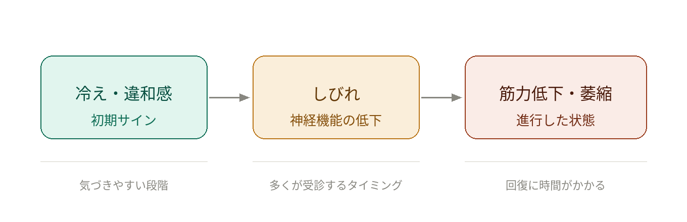 つまり、しびれが出た時点ではすでに初期段階を過ぎているのである。