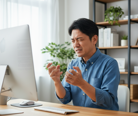 パソコン作業中、指先がしびれて感覚が鈍くなり、文字を打つのもつらかった。
