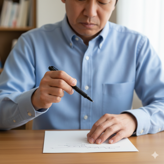 ・ペンを持つと指が不安定になる