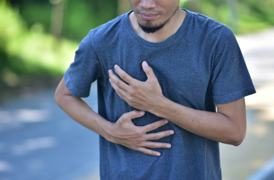 右胸の奥の違和感と、背中(肩甲骨の内側)の刺すような痛み。