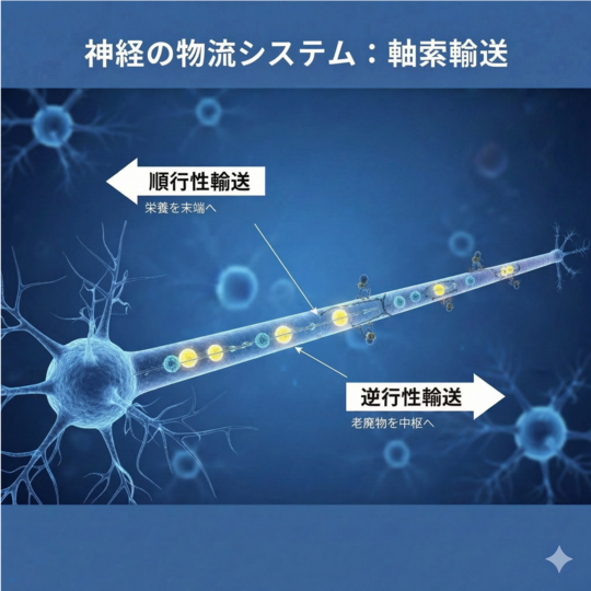 逆行性輸送(ぎゃっこうせいゆそう):下流から上流へ情報を戻し、老廃物を回収する。