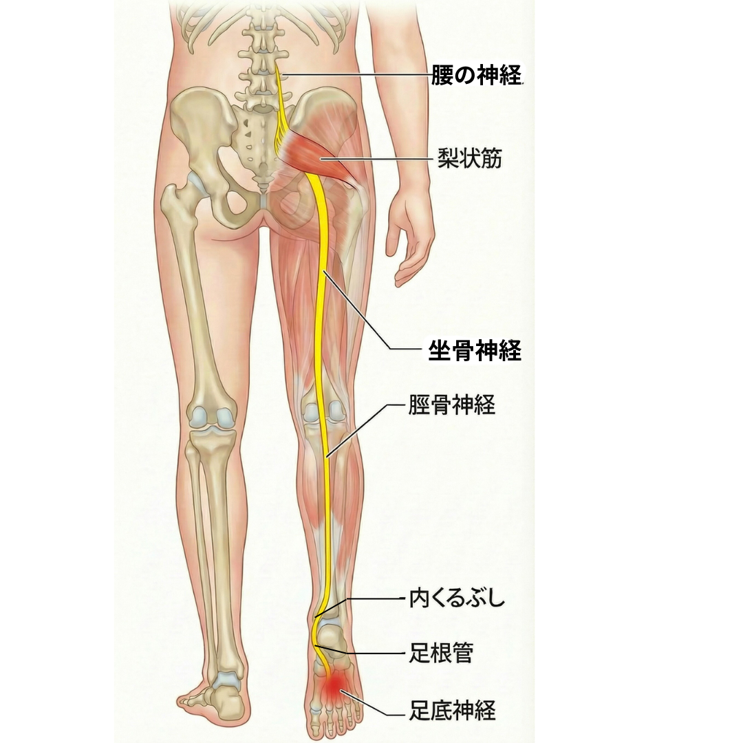 足の裏のしびれが続く場合は、足だけではなく神経の走行全体を確認することが重要である。