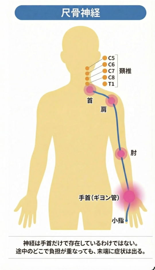 ギヨン管症候群は、手首だけの問題ではありません。