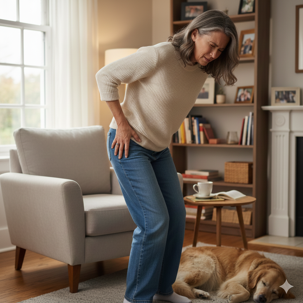 「座っていて立ち上がる瞬間に股関節が痛む」