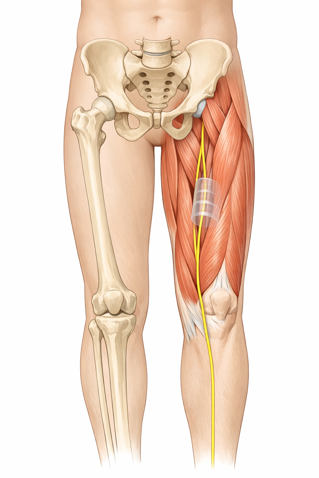 骨盤・股関節・太もも・膝・下腿へと連続している。