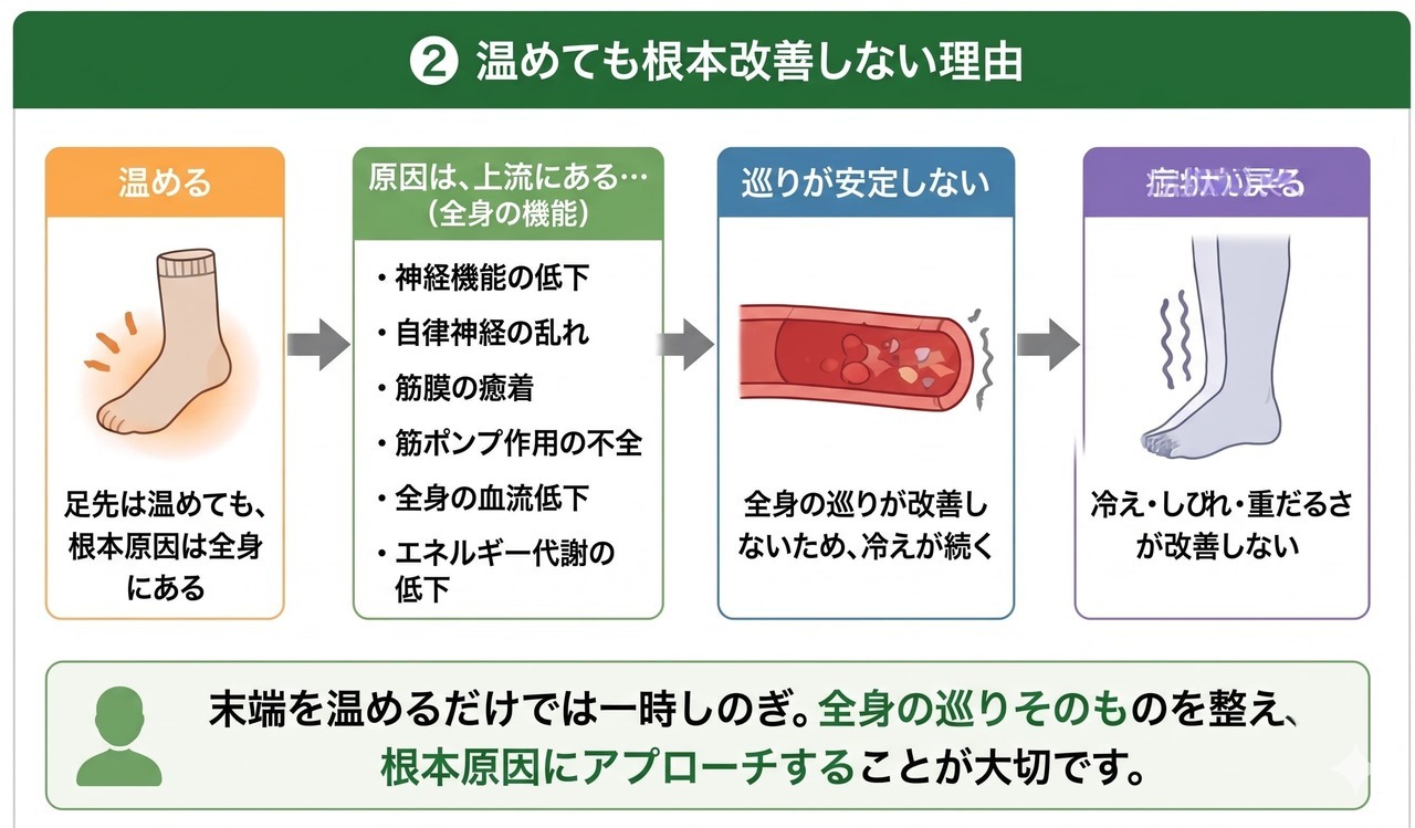 「温めても変わらなかった足の冷え・しびれ、一度整理してみませんか」