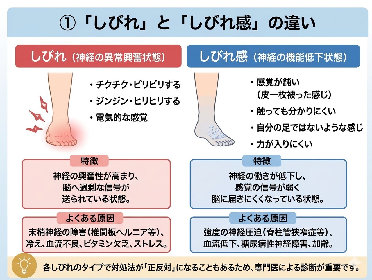 一般の医療機関では両方まとめて「しびれ」と扱われることが多いが、