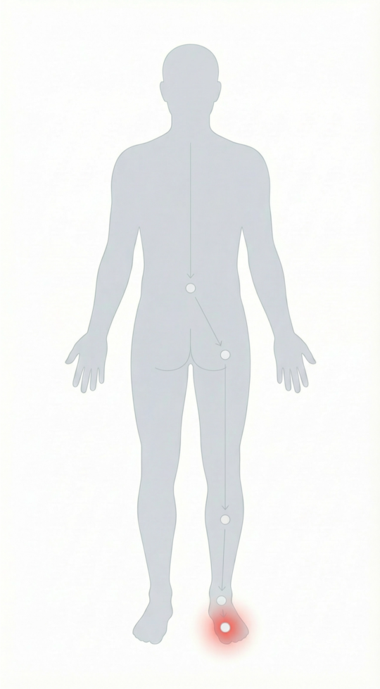 足の痛みは、途中のどこかの負担が積み重なった“結果”として現れる