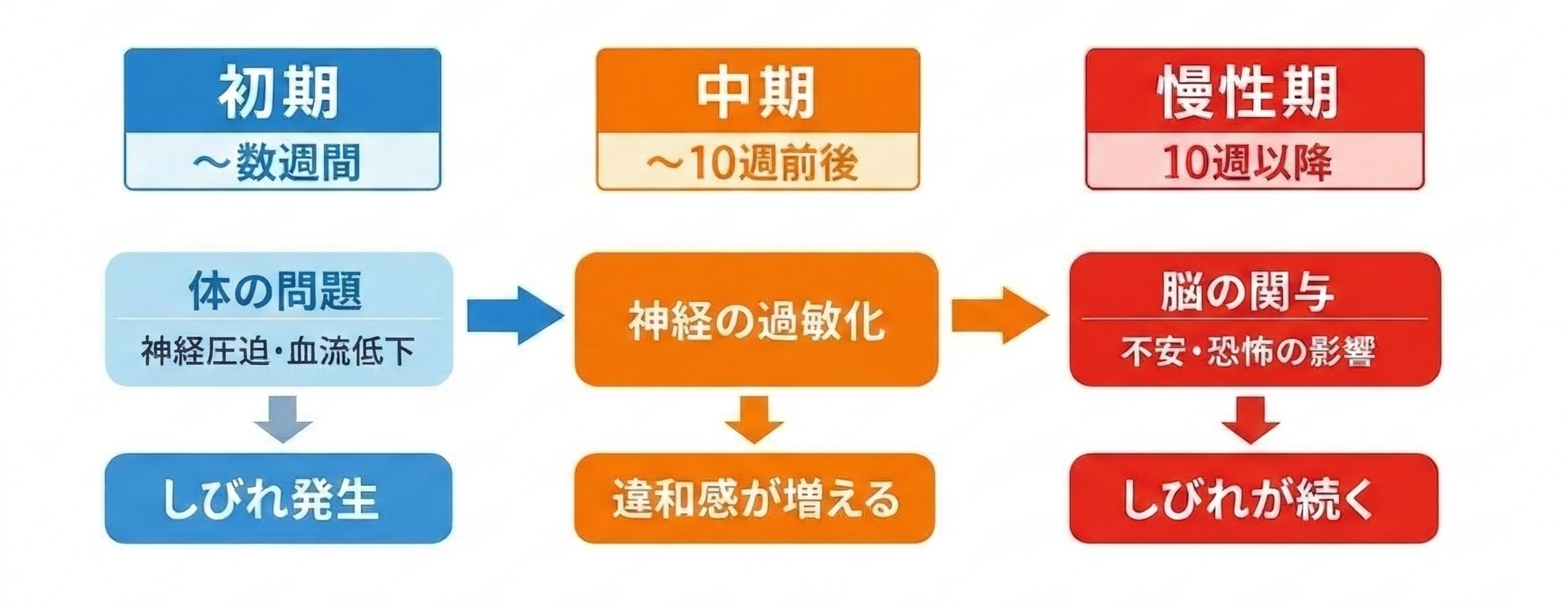 約10週を超えると痛みやしびれの感じ方そのものが変化し、