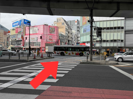 すぐ右に渡る横断歩道がありますので、渡ってください。