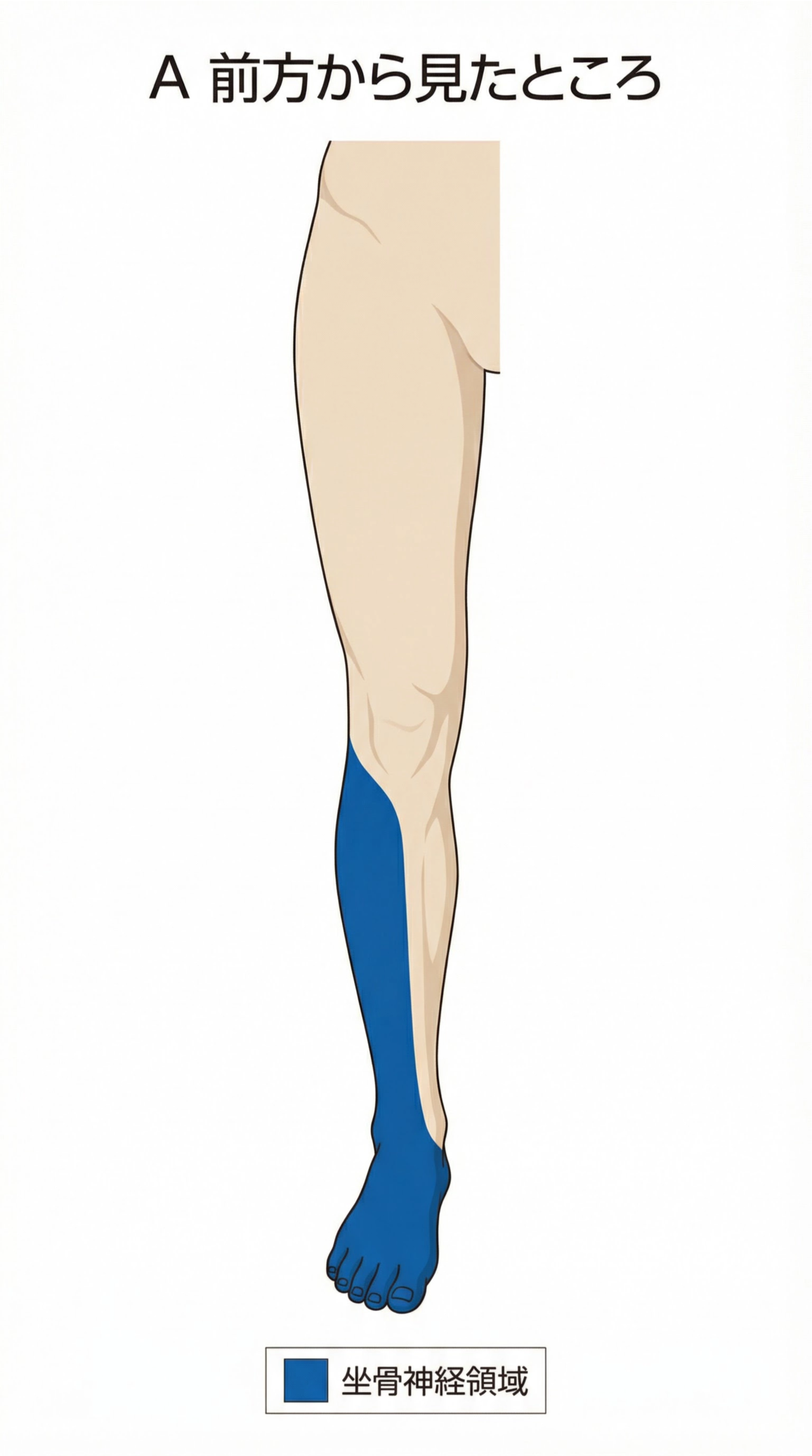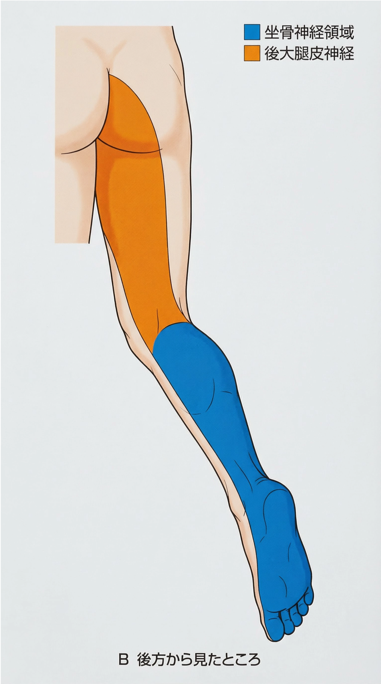 ※臀部〜太もも裏の表面の感覚は、後大腿皮神経が主に担当しています。